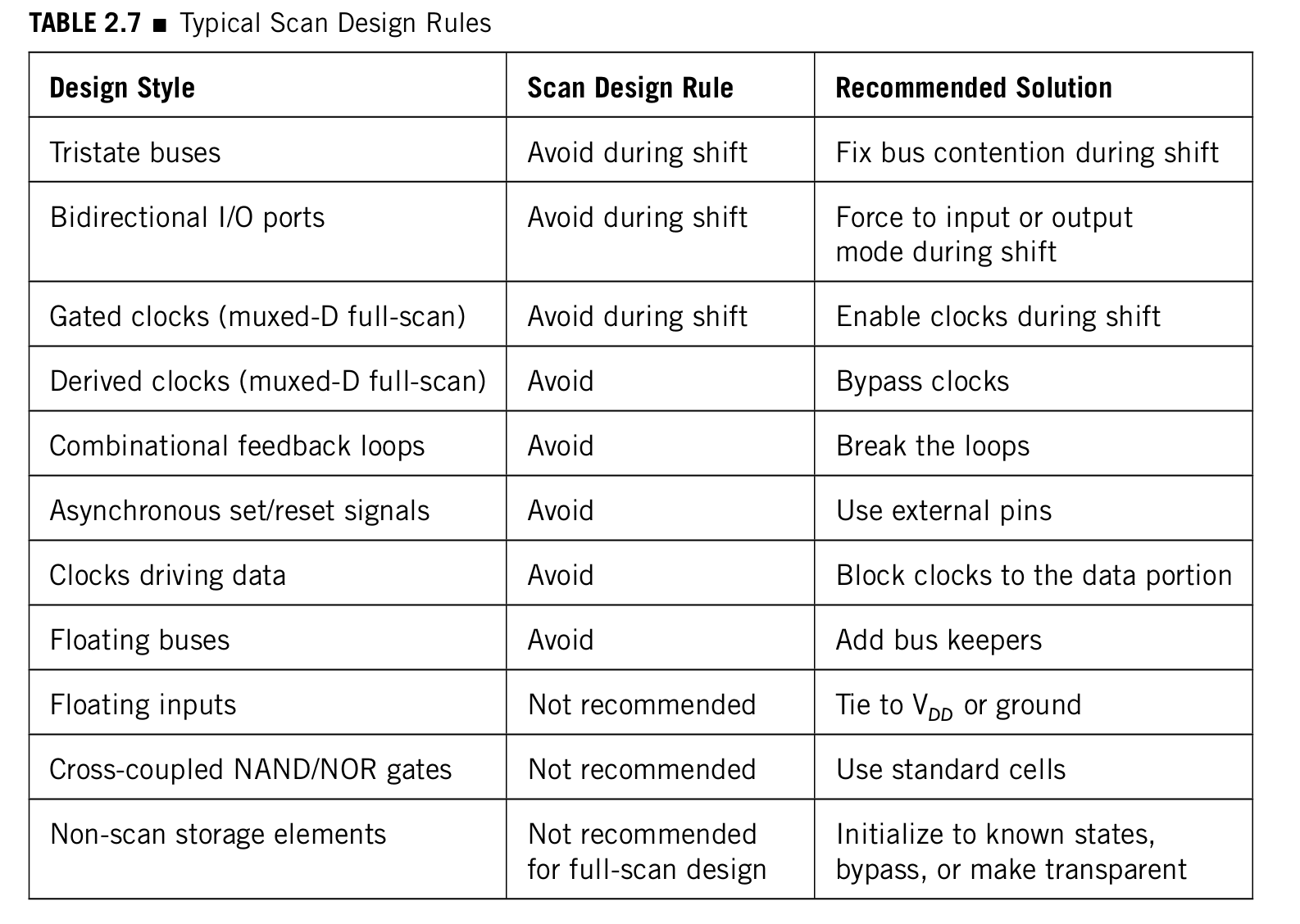 一些典型的scan设计规则如下表: