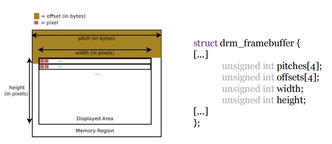 - pitches:代表显示控制器中的一行的长度(字节数),通常4字节对齐