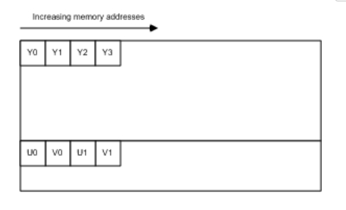 Semiplanar(半平面型):一块内存(显存)区域存储Y组件和另一块存储UV组件