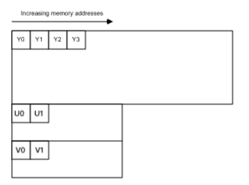 每个内存(显存)区域存储一个帧的组件(Y, U or V)被称作一个plane