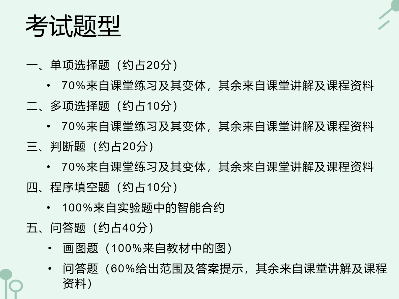 家人们我又来写期末笔记辣,和上一门比起来这门课的复习就要眉清目秀很多了,70%来自平时的课后习题和变体这块子我真的哭死,但是雨课堂太乱了于是顺手整理一下子,先把老师发的ppt放下面吧,目标是三天速通