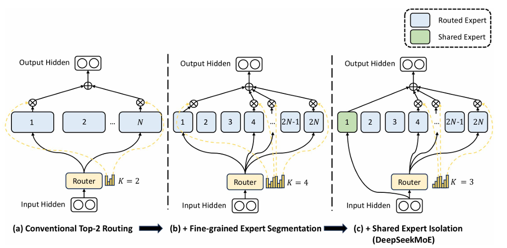 其中,MHA的效果最佳,但是最占显存(kv-cache),MQA的效果是最差的,但最节省显存,GQA效果介于MHA和MQA之间,在计算效果与显存压力之间找到了平衡。假设2个query head对应1个key head/value head,则kv-cache占用的显存可节省一半