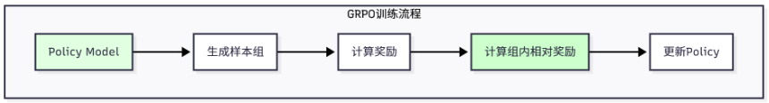 - **采样阶段:**对于每个问题,使用当前策略生成多个答案。这些答案构成一个组,用于计算相对奖励