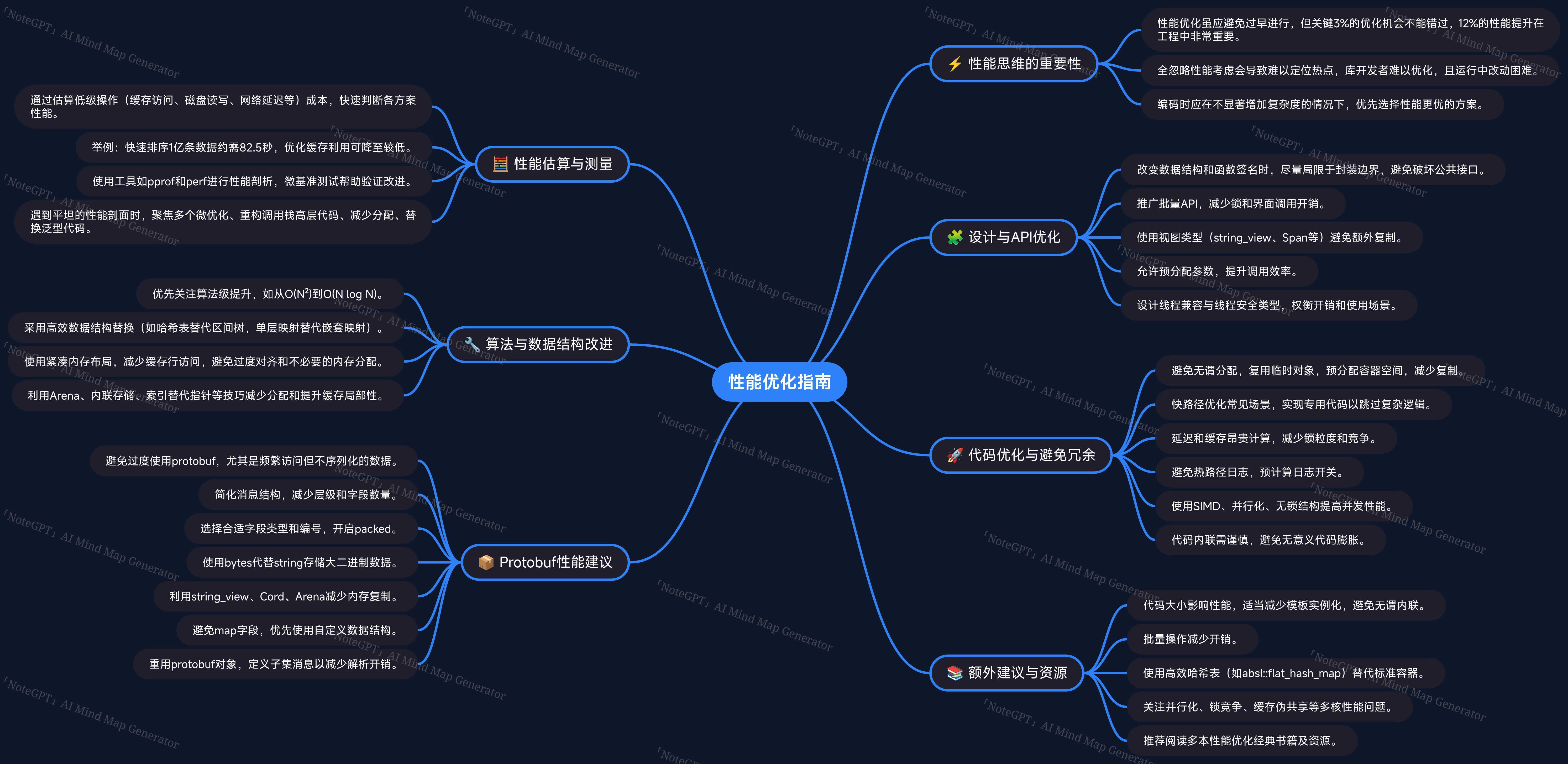 性能测量是性能优化的首要工具。对陌生代码进行性能分析有助于理解代码结构。推荐工具包括Google的pprof和Linux的perf。测量建议: