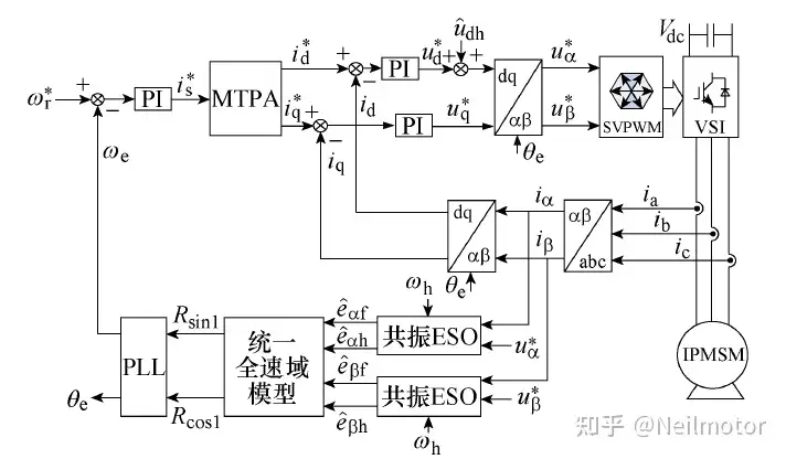 本文采用的技术路线是在零低速注入高频正弦电压以增强LESO在零低速时提取信号的信噪比。相比于之前分享的自适应观测器,稳定性更强,缺点则是需要注入信号;与传统高频切换观测器的方法,文章提出了一种全速域模型,无需切换,算法更简便,过渡更平滑。