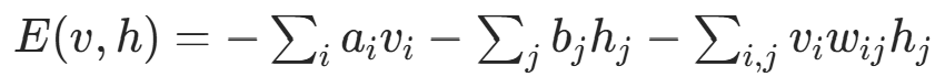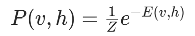 基于能量函数,可见层与隐藏层的联合概率分布为: