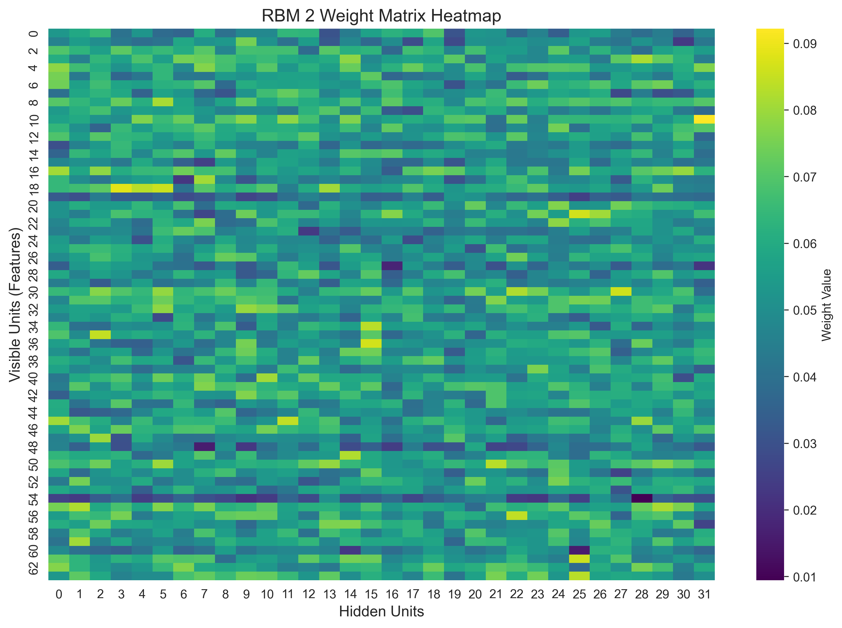 plot_rbm_weights(dbn, rbm_idx=1) # 第二层RBM权重热力图