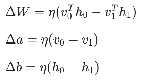 ; - 权重更新:通过最小化重构误差(或最大化对数似然)更新权重和偏置: