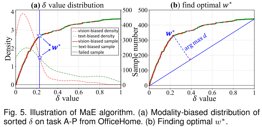 - 视觉偏向样本和文本偏向样本的δ分布形成凸曲线