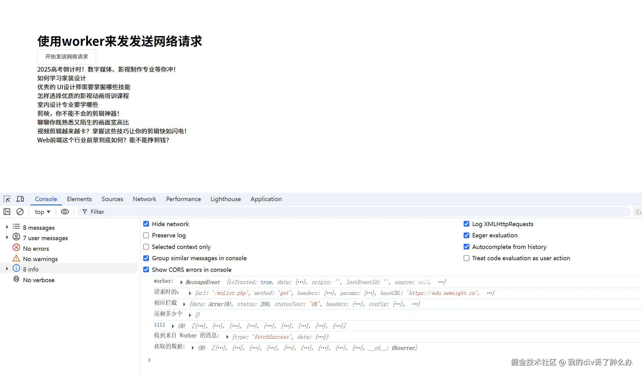// 主线程调用worker.postMessage()方法,向 Worker线程 发消息,开始进行网络请求