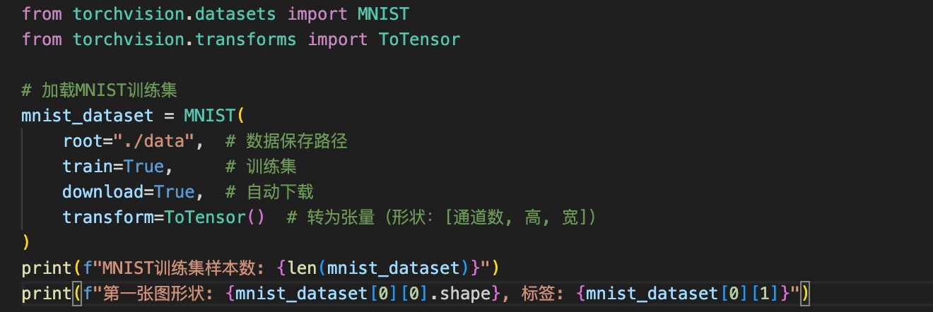 MNIST 是手写数字图像数据集,常用于图像分类入门,PyTorch 中可通过torchvision.datasets.MNIST直接加载。