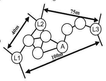 (3)假设节点A最先得到了锚节L3广播的平均每跳距离,则节点A计算得到的三个跳段距离分别为: