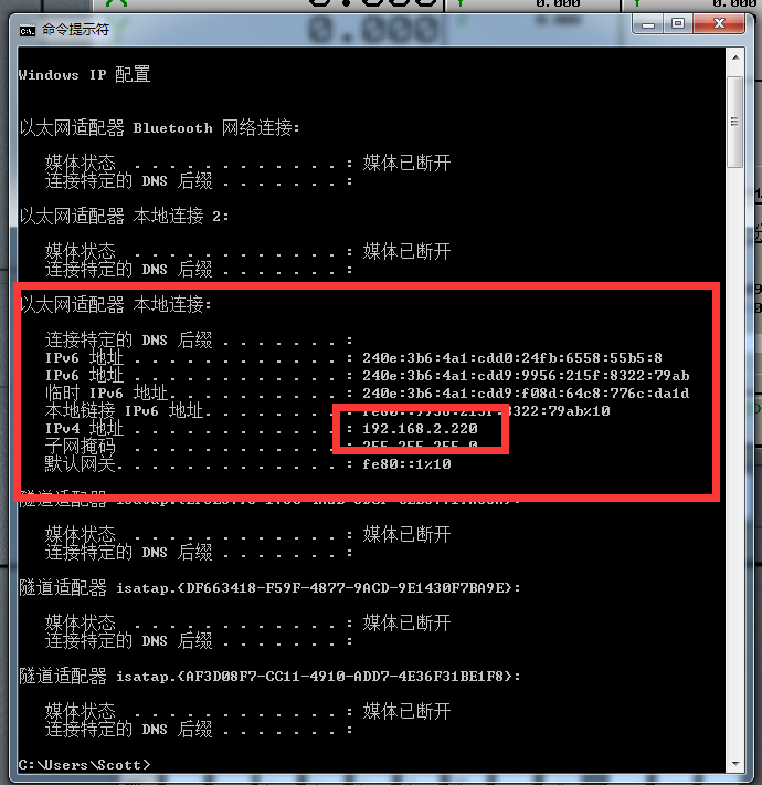 然后打开cmd窗口,通过ipconfig命令查看虚拟机的IP