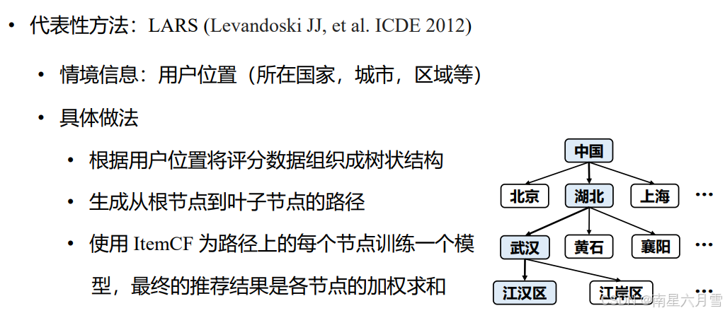 - 情境建模:将情境信息纳入到推荐系统的模型中,在推荐的各个阶段更好地理解和利用情境信息