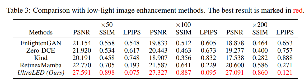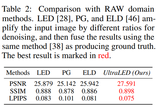 UltraLED比HDR类方法高出2个点左右,比RAW域方法高出2个点左右,比低光照增强方法高出5个点。