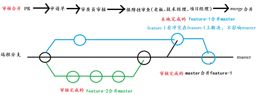 (2)最后合并feature-1和feature-2到master分支。