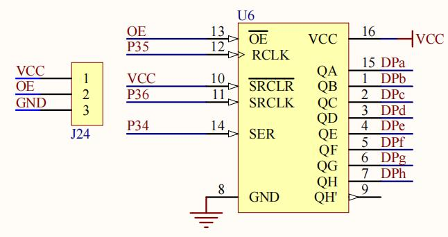 开发板上的 74HC595 模块电路如下图所示: