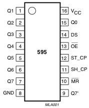 74HC595 是具有 8 位移位寄存器和一个存储器, 三态输出功能。 移位寄存器和存储器是单独的时钟。 数据在 SCK 的上升沿输入, 在 RCK 的上升沿进入到存储器中。 如果两个时钟连在一起, 则移位寄存器总是比存储器早一个脉冲。 移位寄存器有一个串行输入(DS) , 和一个串行输出(Q7 非) , 和一个异步的低电平复位, 存储寄存器有一个并行 8 位的, 具有三态的总线输出, 当 MR 为高电平, OE 为低电平时, 数据在 SHCP 上升沿进入移位寄存器, 在 STCP 上升沿输出到并行端口。