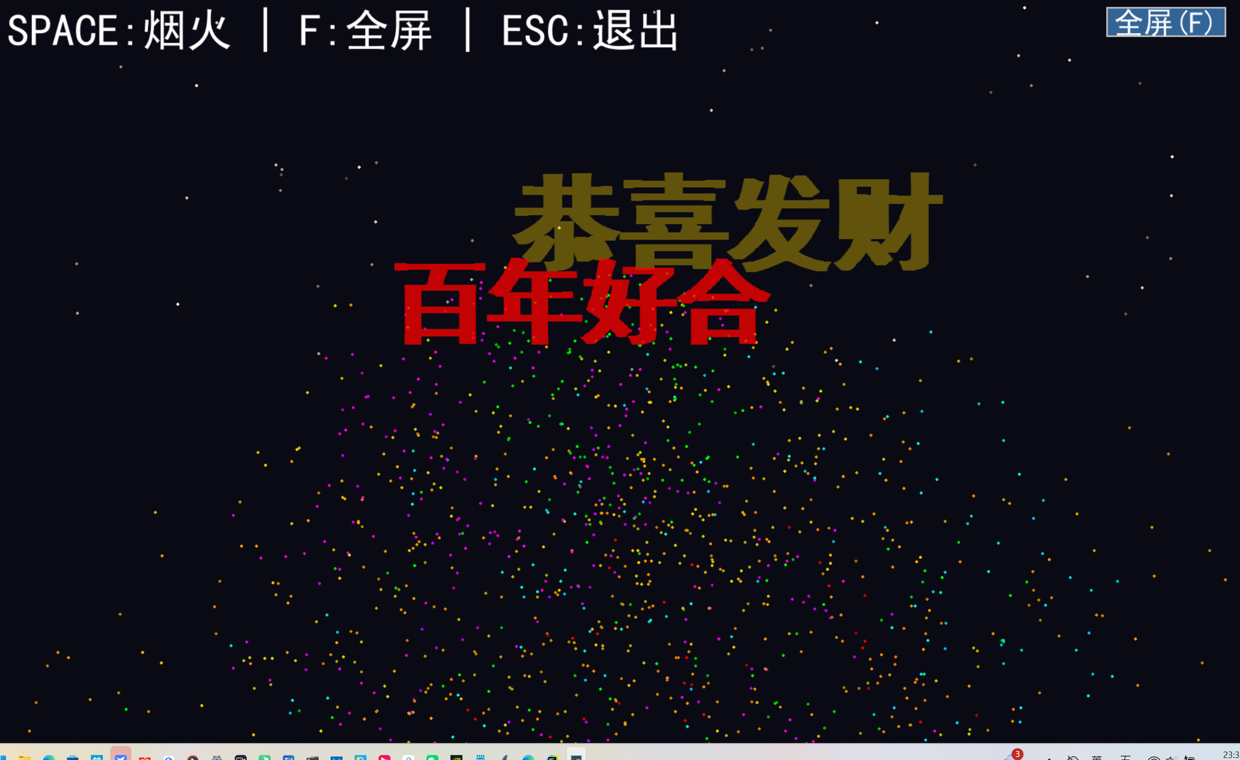 help_text = self.small_font.render("SPACE:烟火 | F:全屏 | ESC:退出", True, (255, 255, 255))