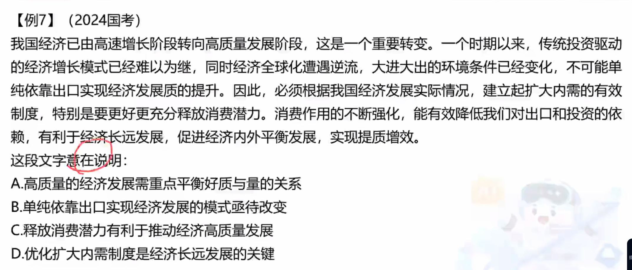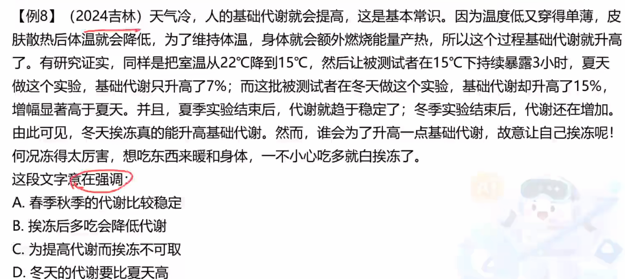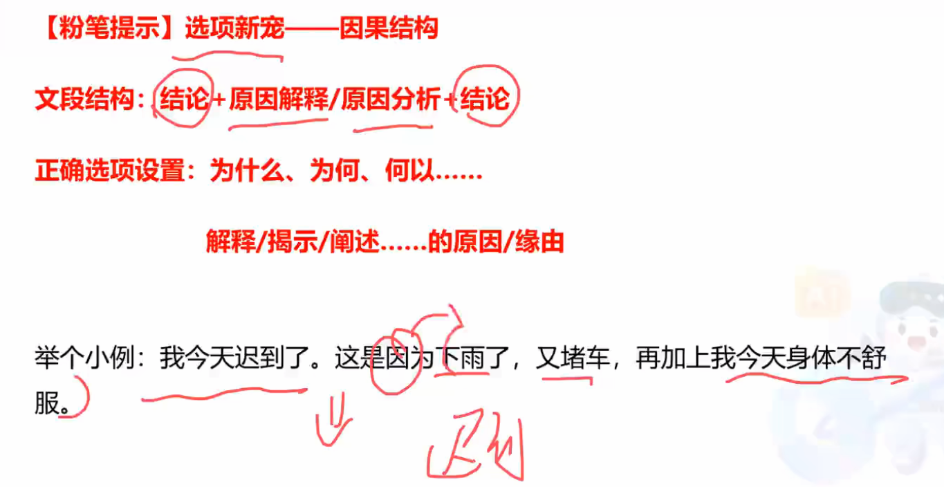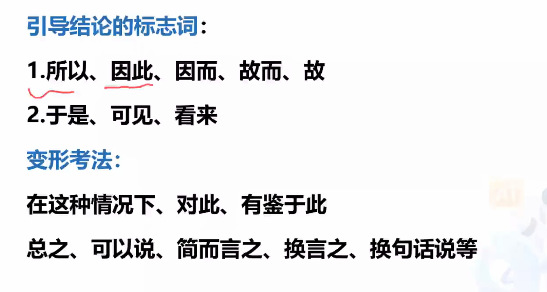 若尾句出现结论词,大部分情况下是对前文的总结,尾句通常为文段的中心句