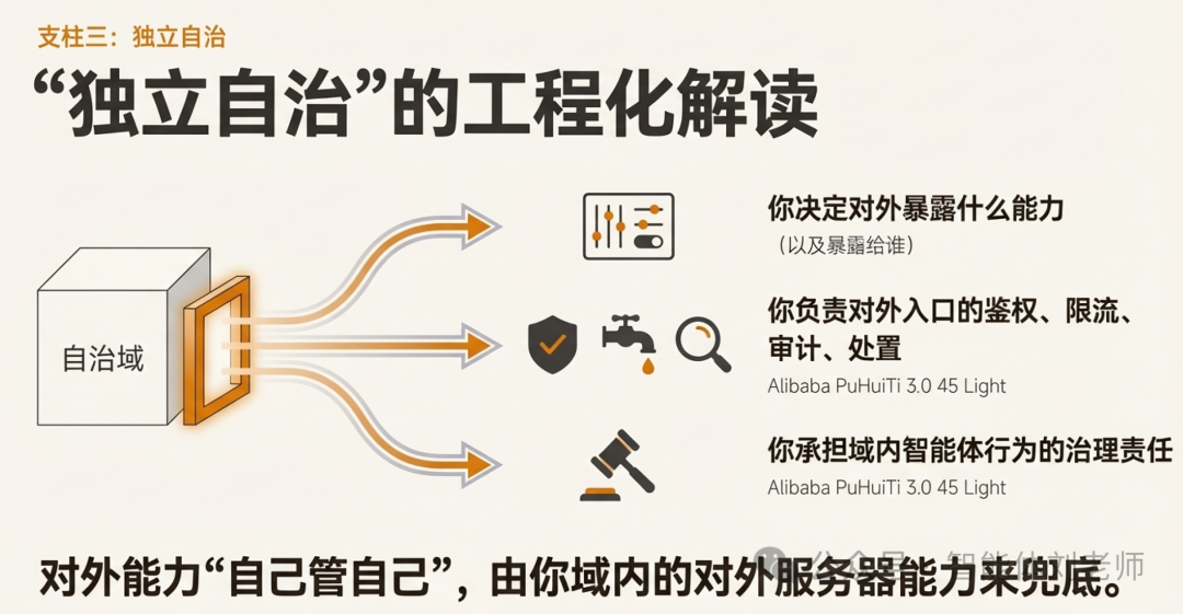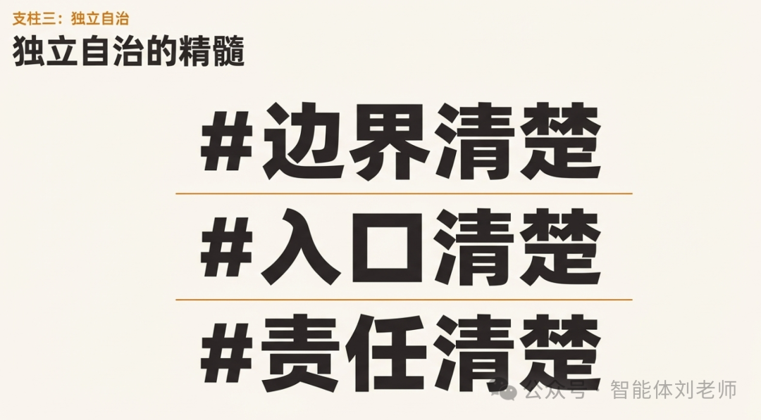 这就是"独立自治"的含义:边界清楚、入口清楚、责任清楚。