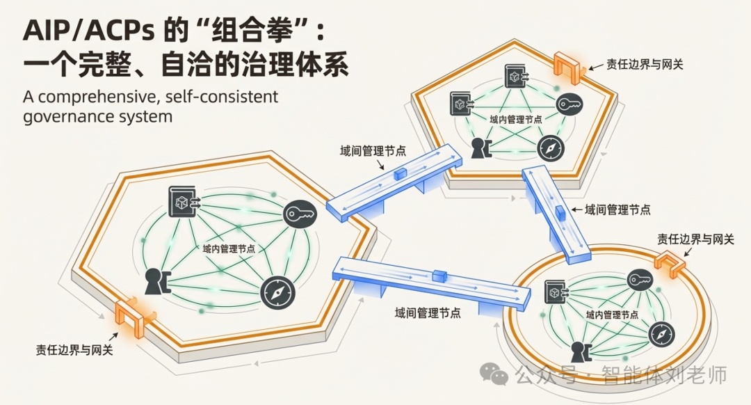 在理解了上一篇文章介绍的:在AIP/ACPs体系中,如何实现两个不同域之间的智能体互联协作方法。下面我们可以来了解下,AIP/ACPs体系能够达成兼顾治理规范和产业发展两个看似矛盾的目标最重要的原因,也就是下面这个问题: