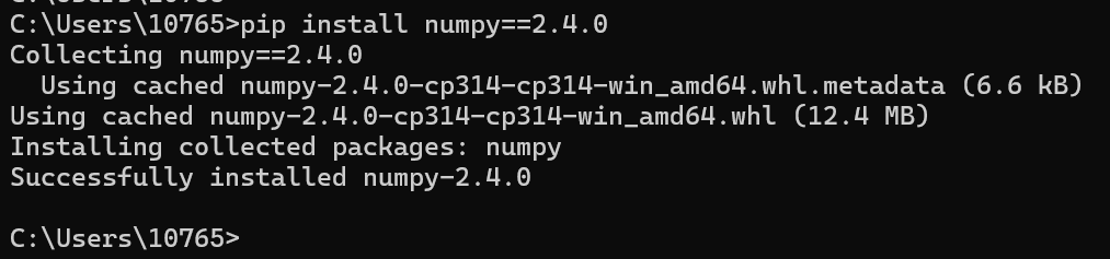例如安装 numpy 库,如下:
