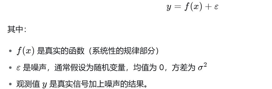 2.观测值 y 与真实值(或潜在的真实关系给出的预测值)之间的不可预测的随机偏差。(√)