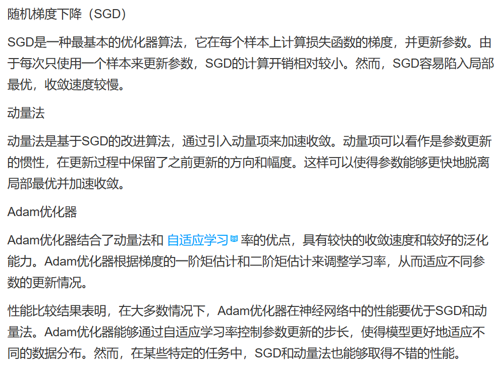 关于神经网络中经典使用的优化器,以下说法正确的是(D)