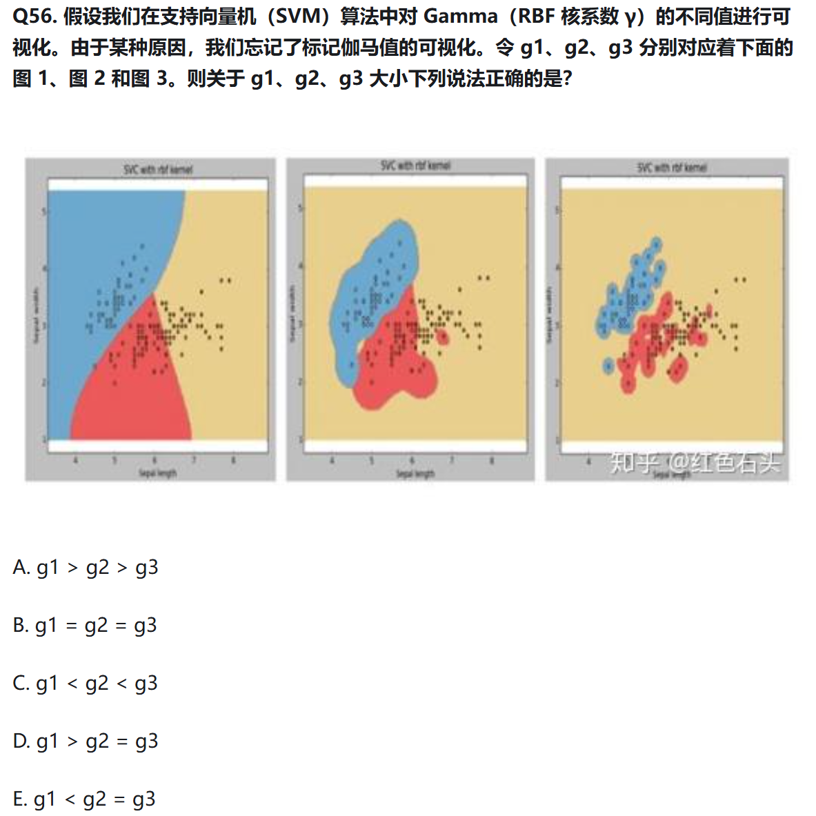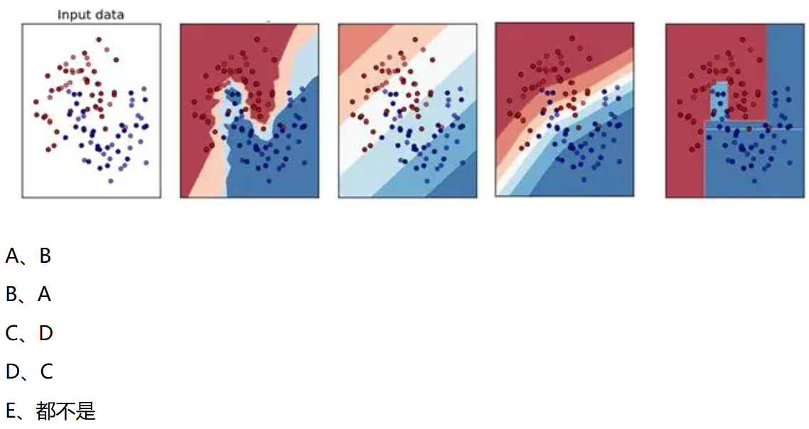 以下哪个图是KNN算法的训练边界?(B)
