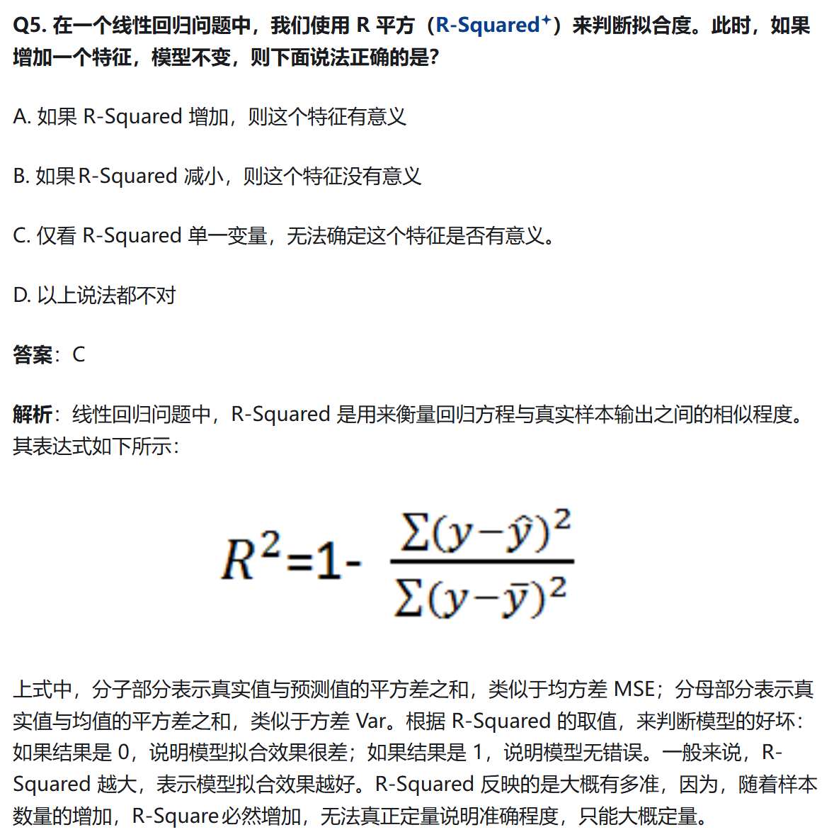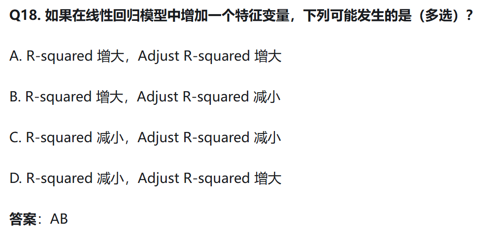 增加一个特征变量,如果这个特征有意义,Adjusted R-Square 就会增大,若这个特征是冗余特征,Adjusted R-Squared 就会减小。
