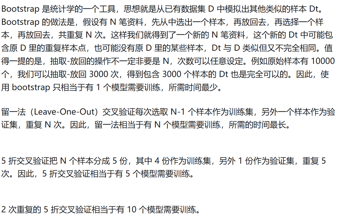 D. 给定n个数据点,如果其中一半用于训练,一般用于测试,则训练误差和测试误差之间的差别会随着n的增加而减少