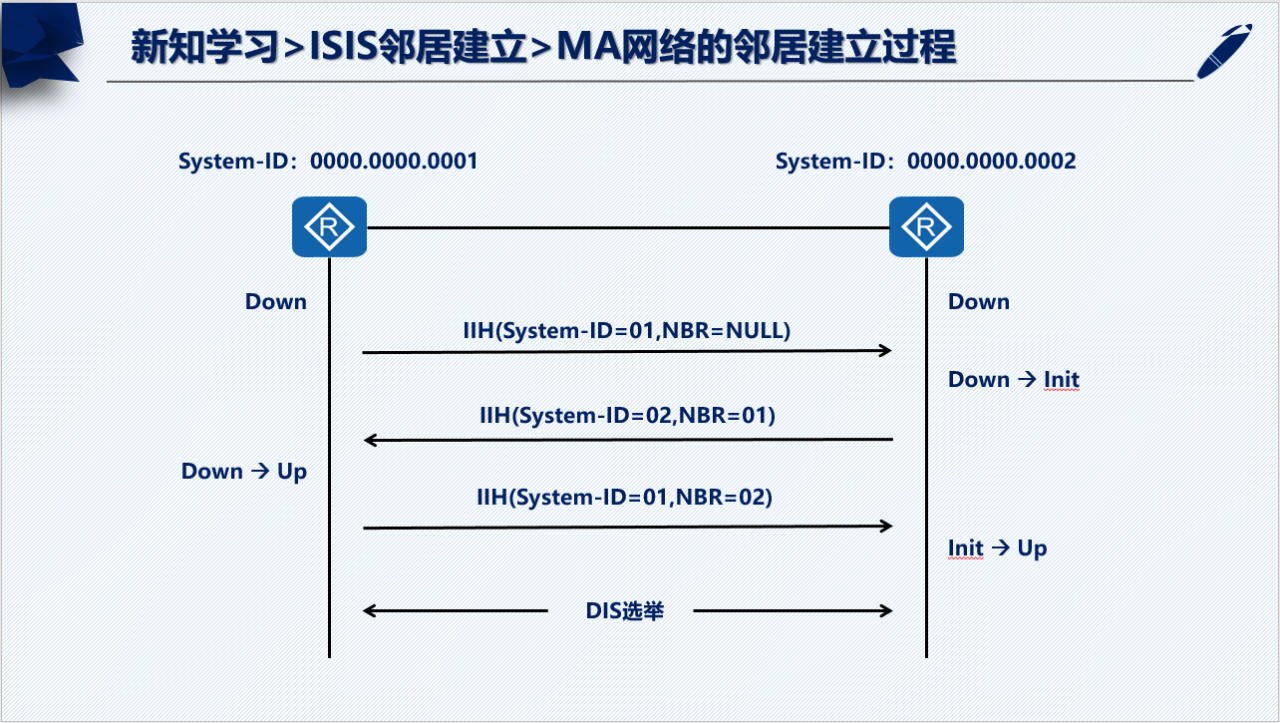 Init状态:收到对方System-ID有效、NBR=NULL的IIH报文