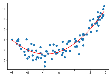 plt.plot(np.sort(x), y_predict[np.argsort(x)], color='r') # 折线图(预测值, 拟合回归线)