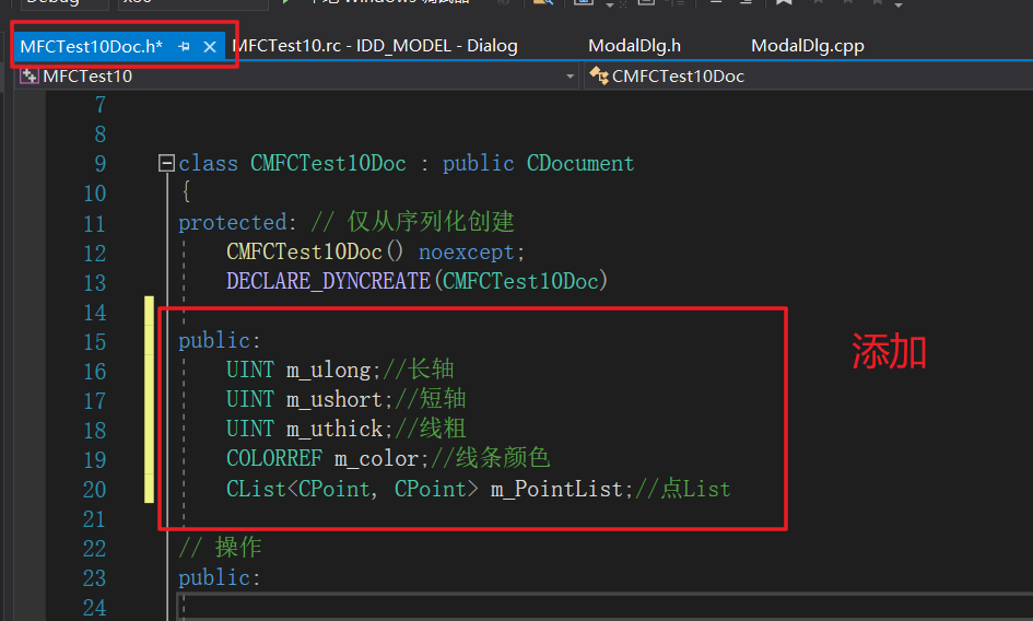 pDc->Ellipse(point.x, point.y, point.x + pDoc->m_ulong, point.y + pDoc->m_ushort);//画圆