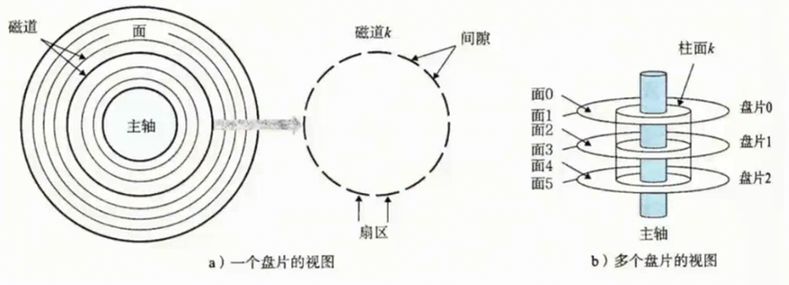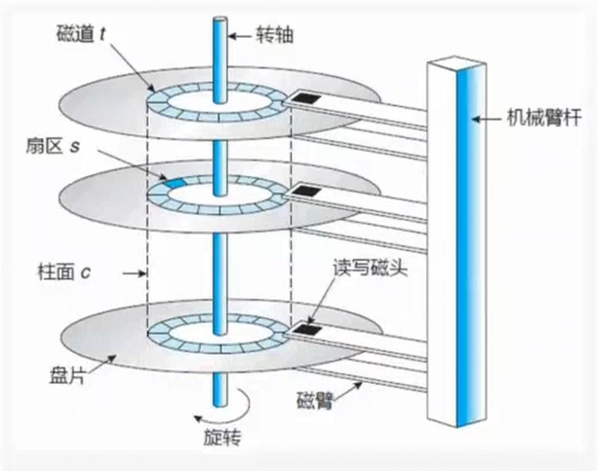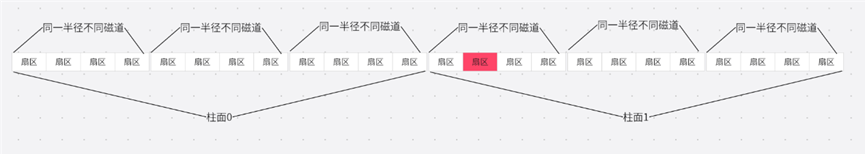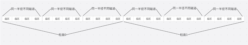对于磁盘,半径相同的磁道组成一个柱面。后续在讲磁道和柱面时是一个概念。