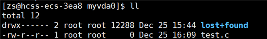 /dev/loop0 就是挂载的分区。挂载到指定目录下之后,就可以直接使用该分区了,在 myvda0 中创建一个文件 test.c。