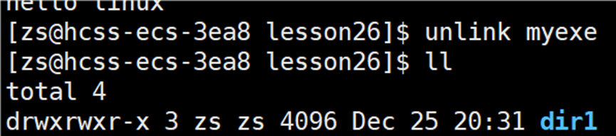删除软链接使用指令:unlink 软链接名。