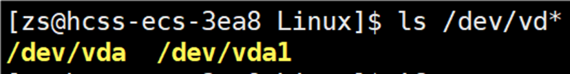 使用指令:ls /dev/vd*,查看当前云服务器有几个磁盘:
