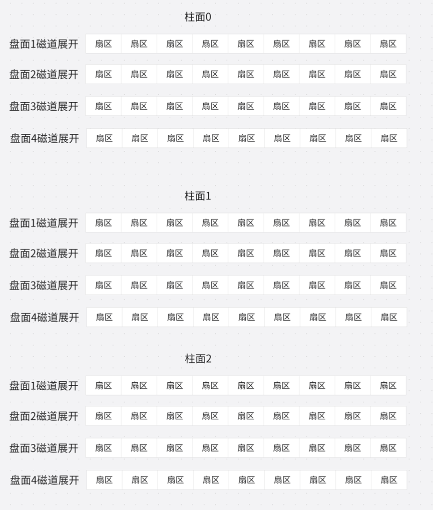 柱⾯上的每个磁道,扇区个数是⼀样的,这不就是二维数组吗?