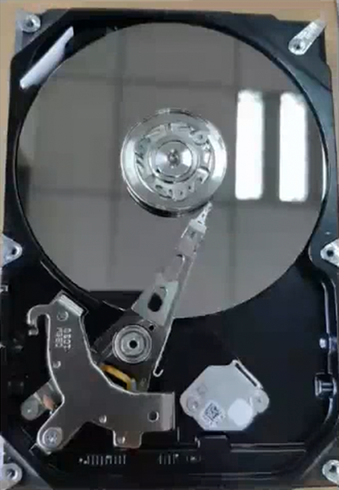 磁盘一旦拆开,进入灰尘之后,磁盘就报废了,在未打开磁盘时,内部整个环境都是无尘的。磁盘拆开后如下图所示: