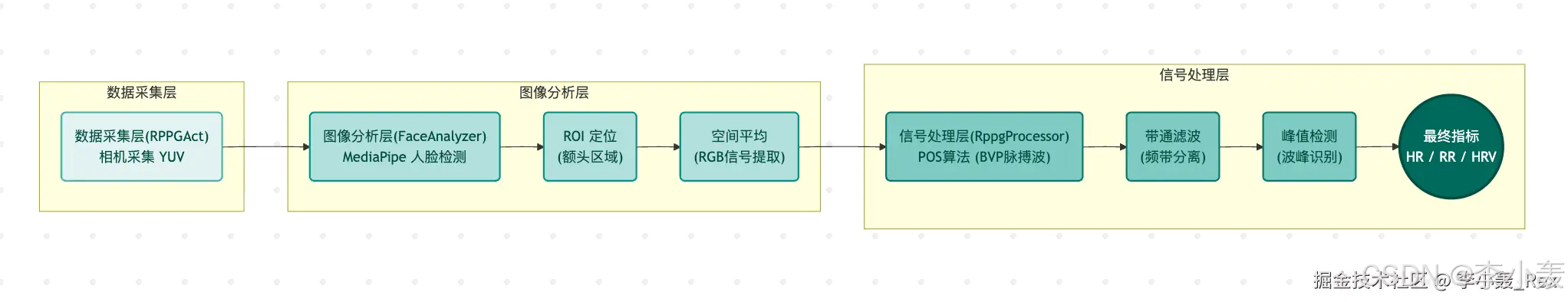 传统心率测量需要佩戴手环、电极或血氧探头,而 远程光电容积脉搏波描记法(rPPG) 只需要手机摄像头。