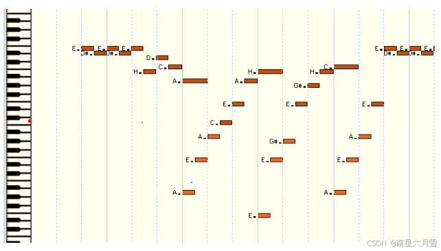 对于MIDI文件,一般每个音轨对应一个通 道,而主旋律的音符会有更大的演奏力度和 更长的发声时间(对应MIDI文件中的"发声面积",可以用这两者加以区别)