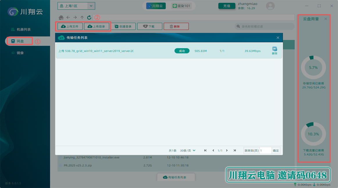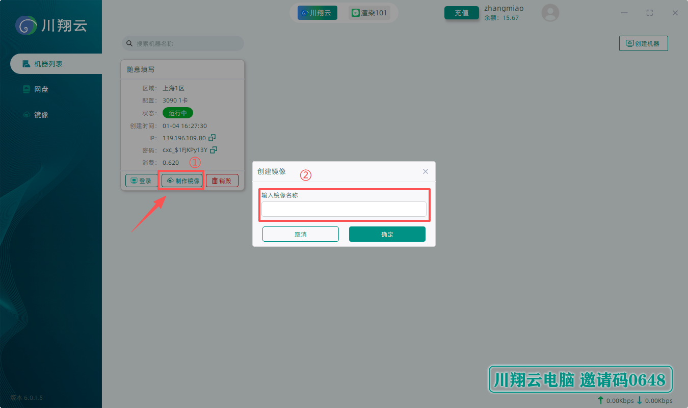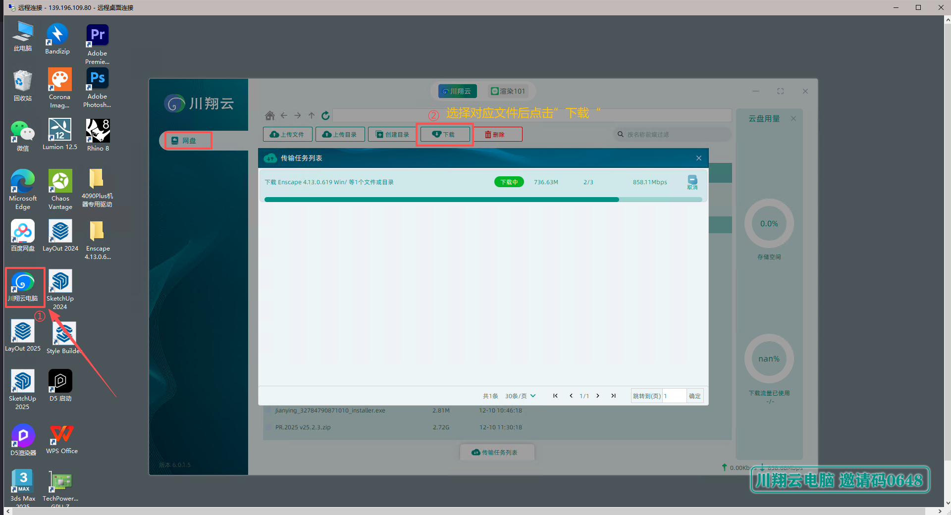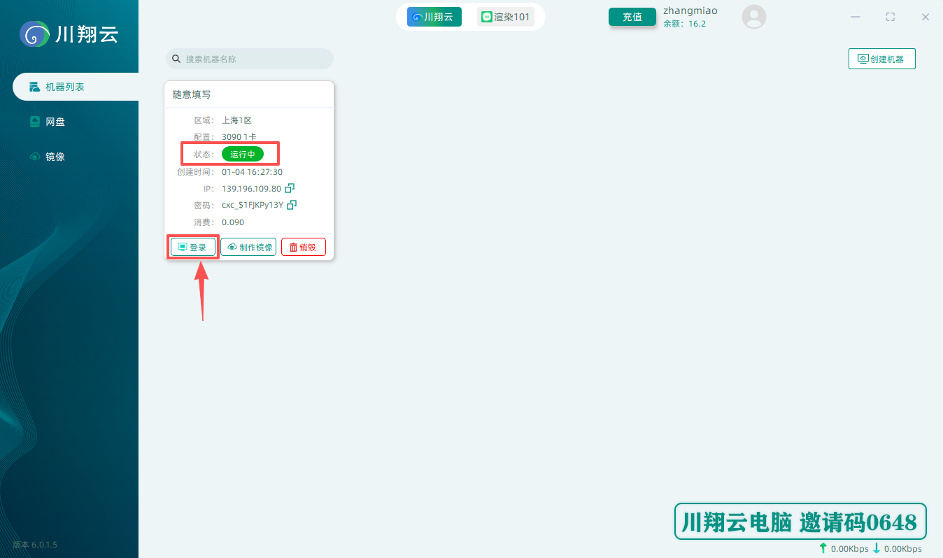 账号密码登录云平台或客户端(如川翔云电脑),进入控制台。