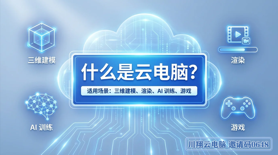 通过本教程,你可以快速掌握川翔云电脑从 上传项目 → 创建机器 → 远程操作 → 输出成果 → 释放资源 的完整流程。本方法可用于三维建模、渲染、AI 项目开发等多种高算力场景。