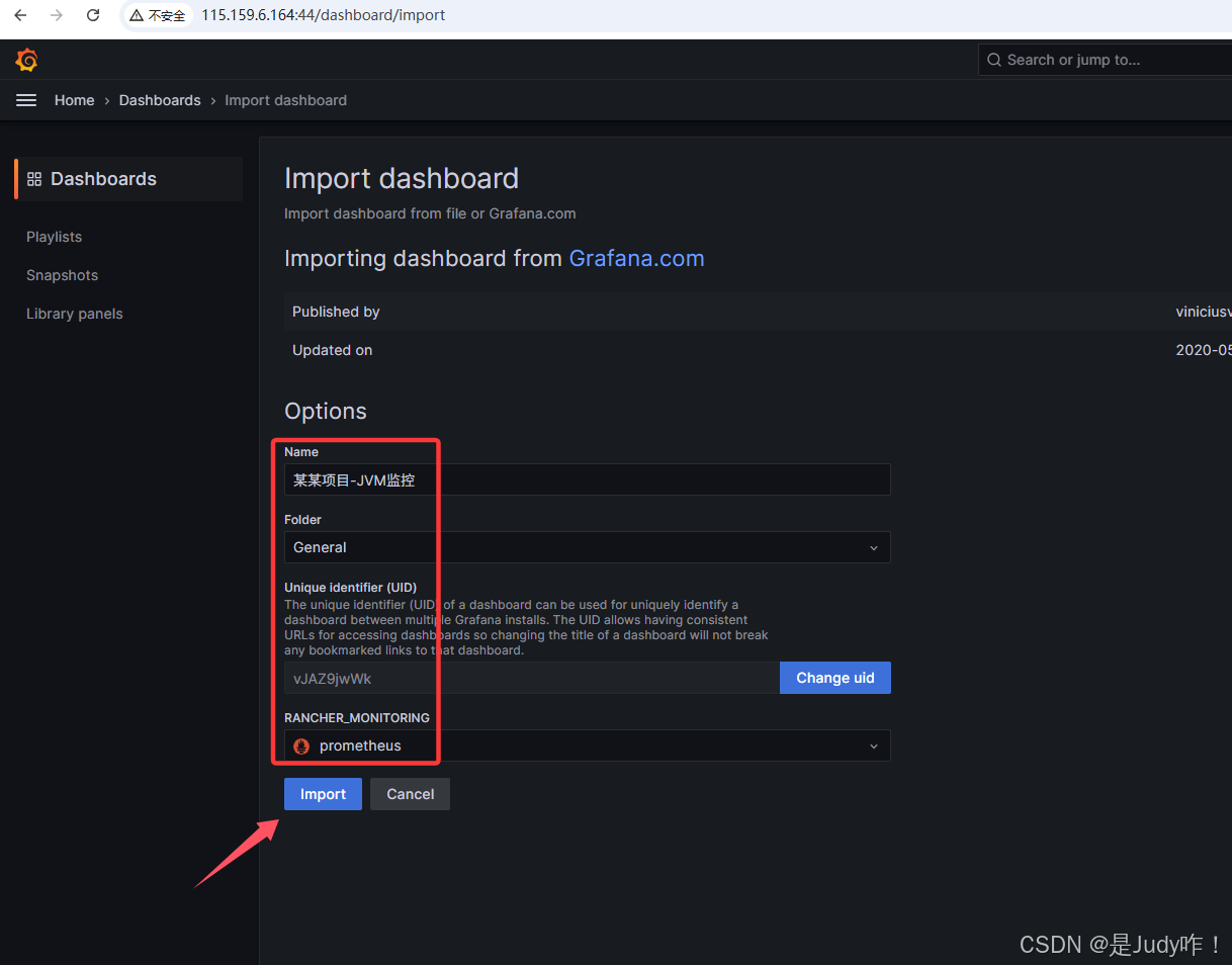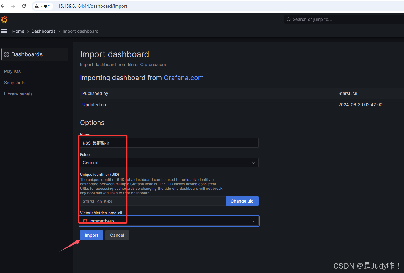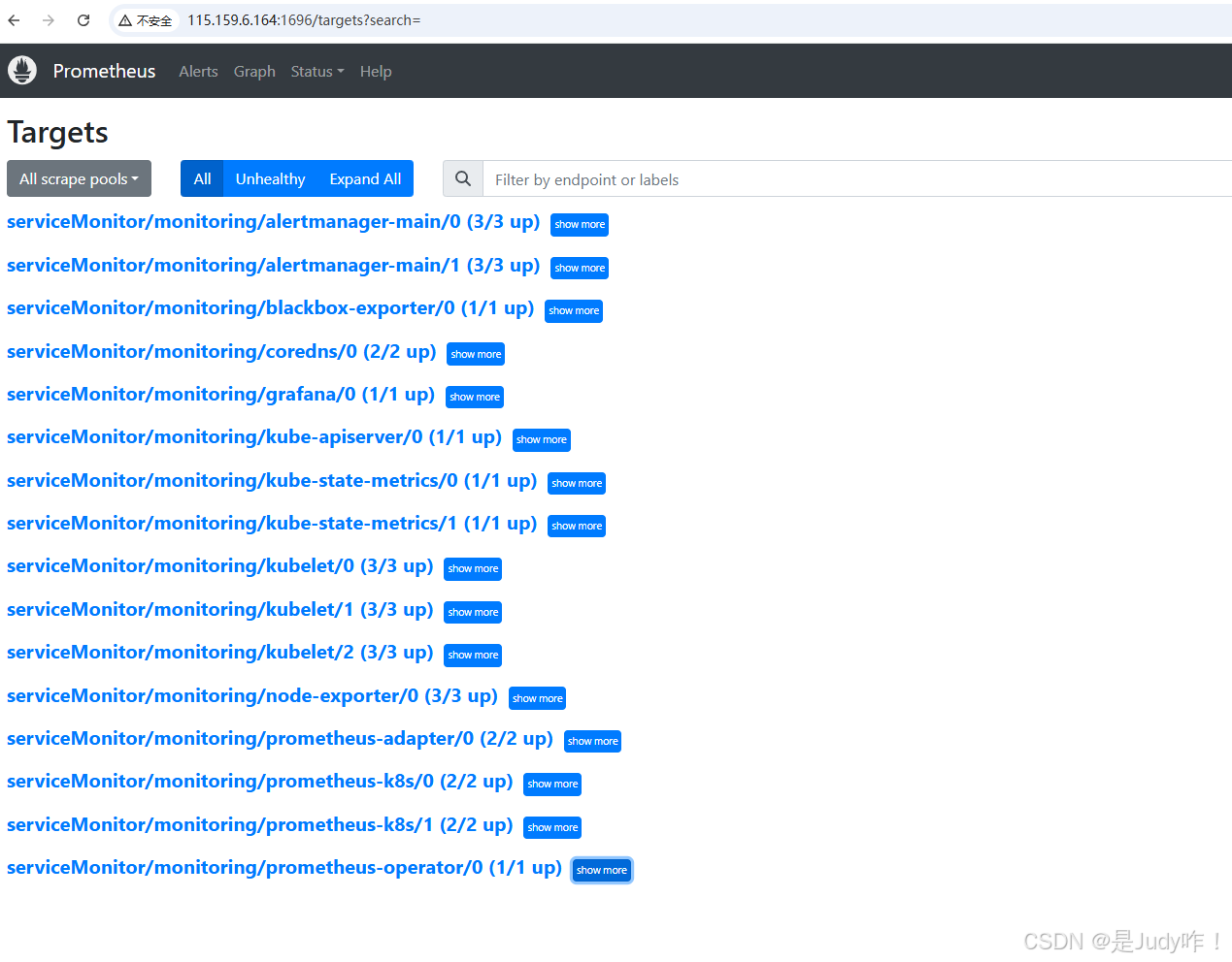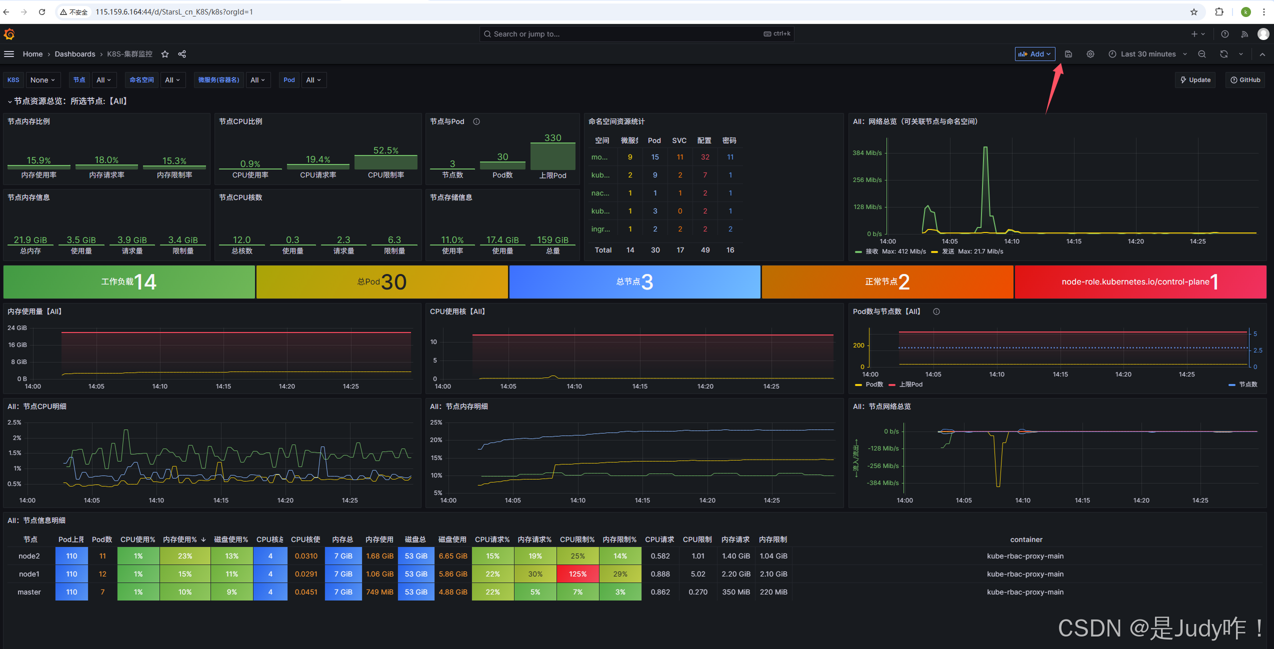 注意:访问grafana和普罗米修斯时一定要注意这个两个服务是在哪个节点上面跑这个然后pod所在的公网ip地址加高端口