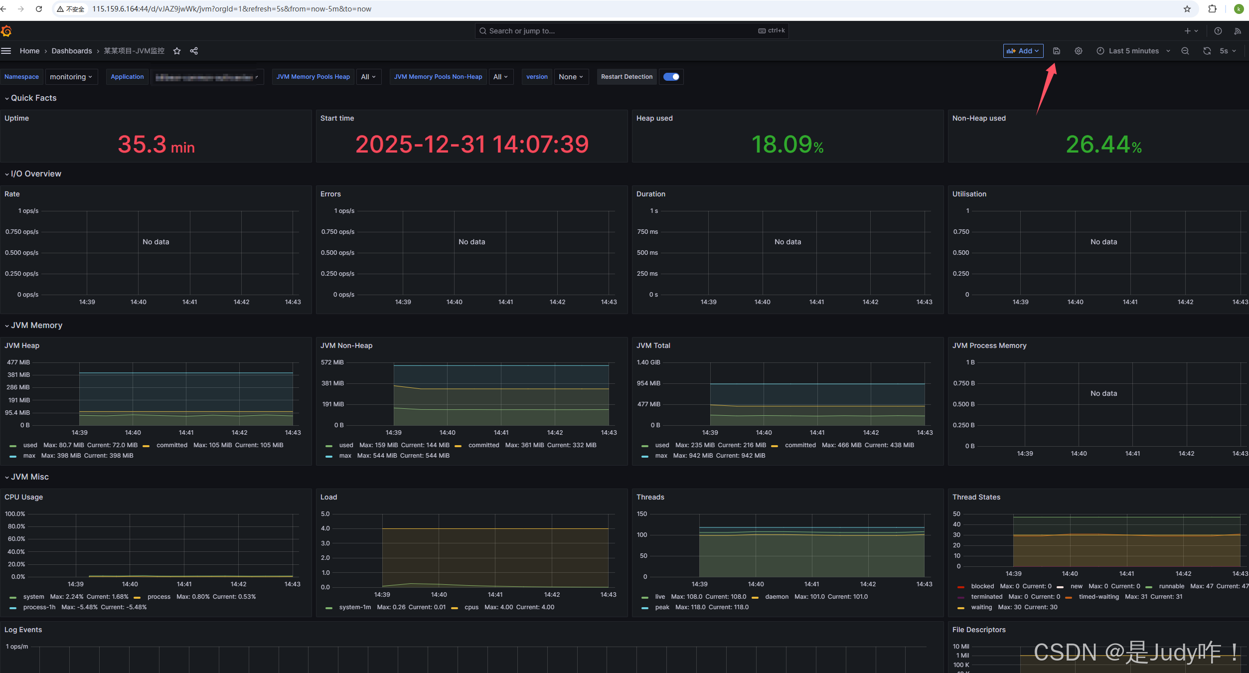 通过 PodMonitor 采集 JVM 指标后,可实现以下监控能力: