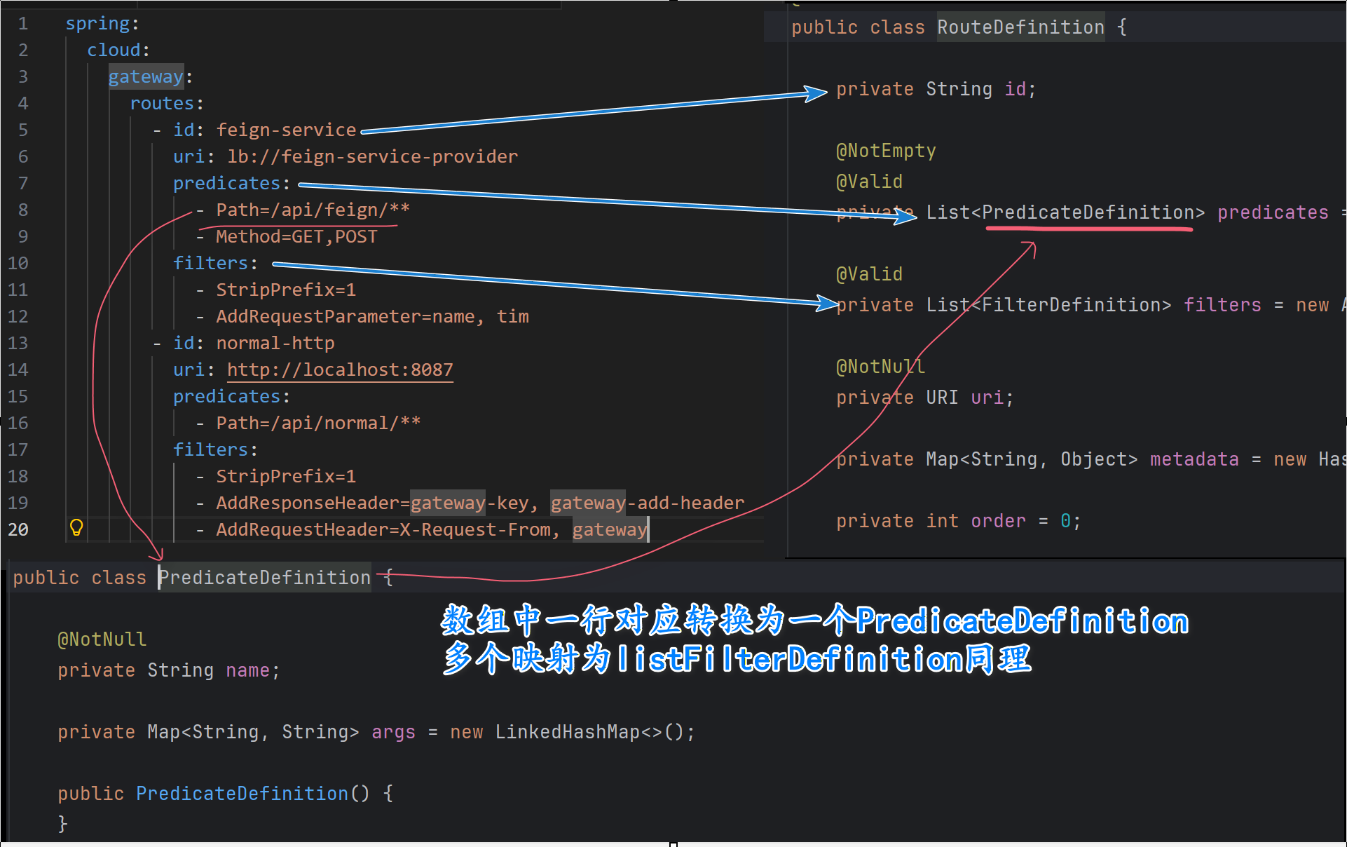 问题在于:String:Path=/api/feign/** 怎么转换为:PredicateDefinition