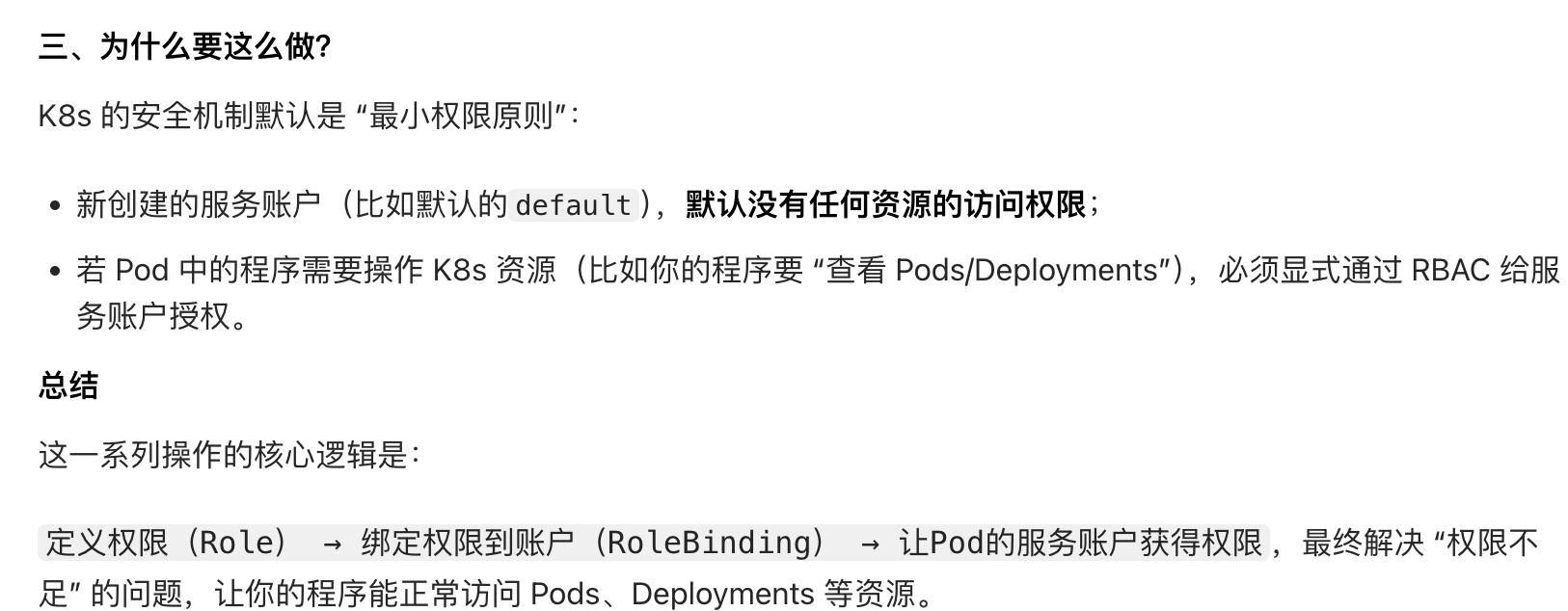 - K8s在部署pod时候,会给它们注入Service Account配置文件,里面包括token和ca证书。