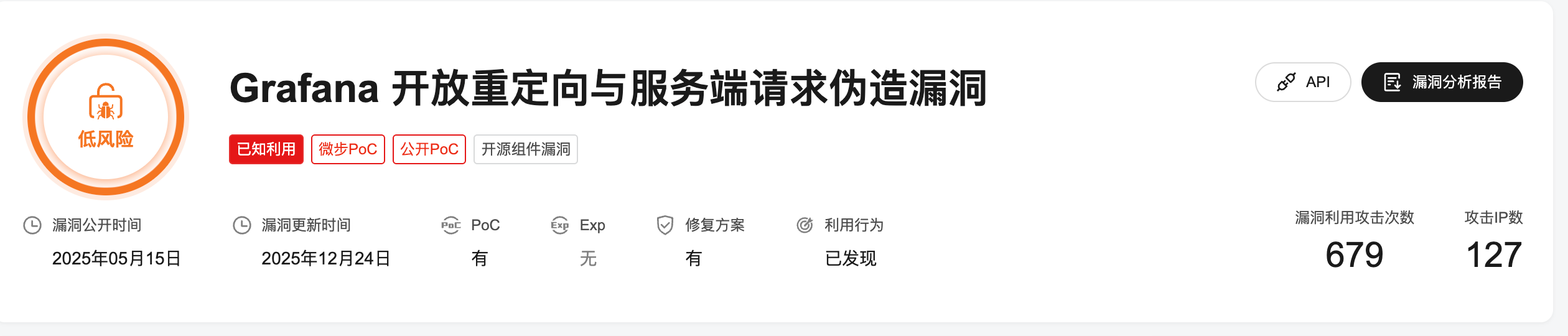 如果安装了 Grafana Image Renderer 插件,攻击者甚至可将开放重定向用于服务器端请求伪造(SSRF),允许读取内部服务数据